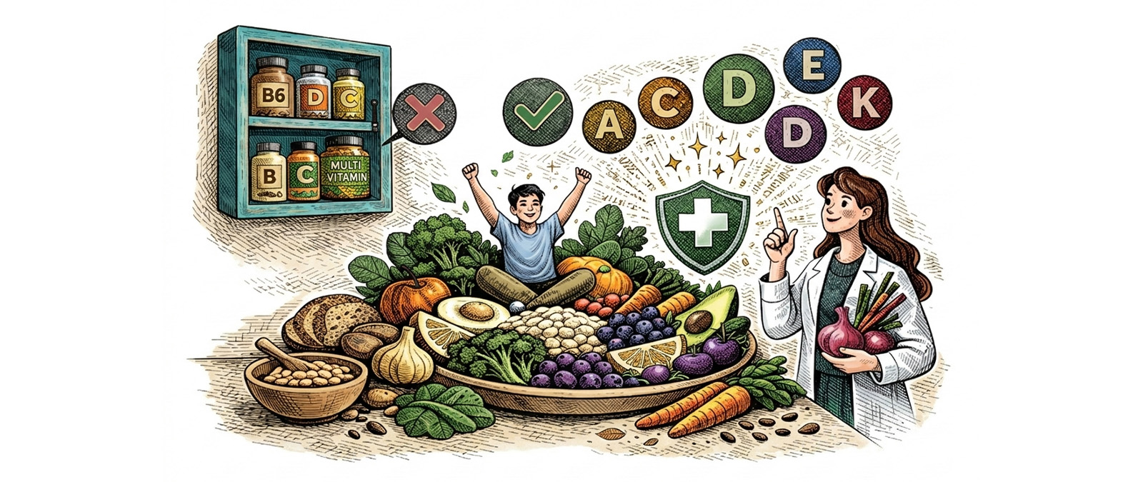 Burada belirtilen unsurlar üzerinde durmak vitamin takviyesinden daha öncelikli olarak ele alınmalı ve değer verilmelidir. Dengeli beslenme sayesinde zaten vücudumuzun ihtiyaç duyduğu vitaminler elde ediliyor olacaktır.