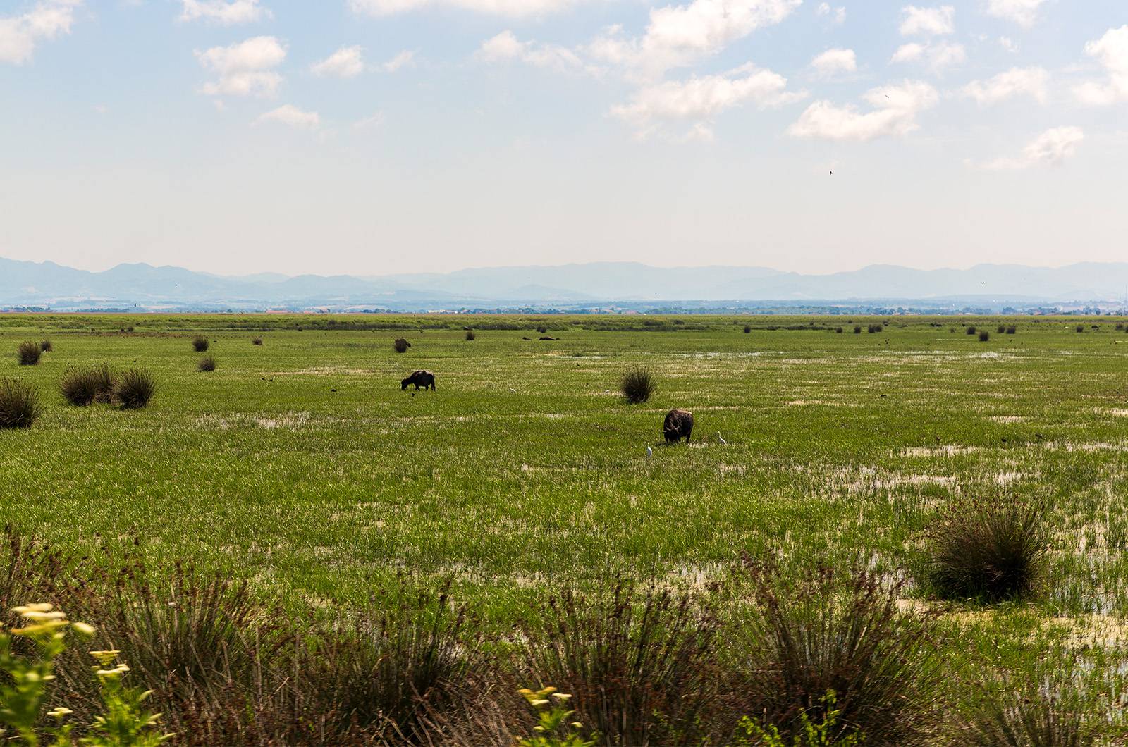Yemyeşil yollardan ilerleyerek Kızılırmak Deltası’na ulaşıyoruz. Deltaya girer girmez, rahatça otlayan inekler ve