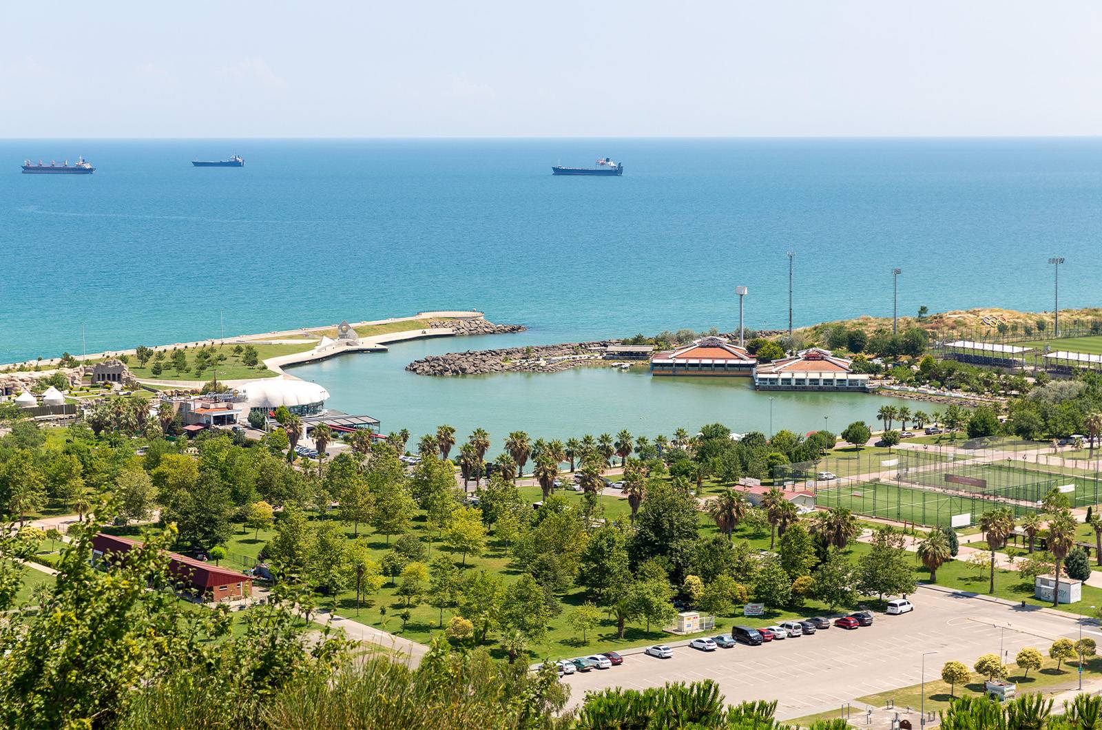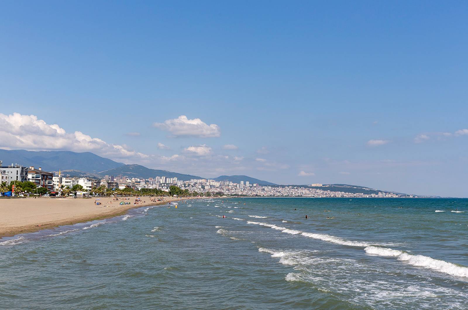 alabildiğine geniş Karadeniz maviliği gözümüzün önüne seriliyor. Kıyı boyunca uzanan sahil şeridi ve mavi